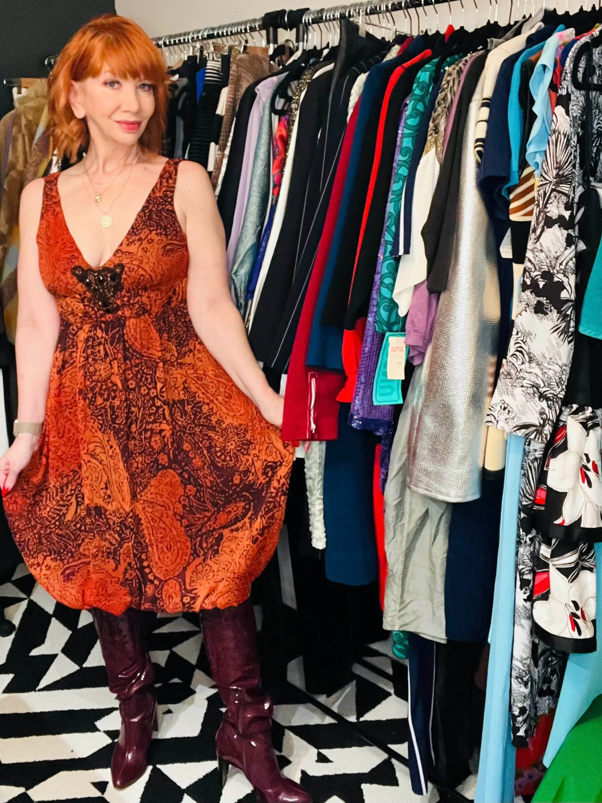 The dress was in the window of a store in the Chanin Building on 42nd Street and Lexington Avenue. I passed by it every single day on my walk to work. I loved the color and the print, but I wasn’t quite ready to drop the cash.